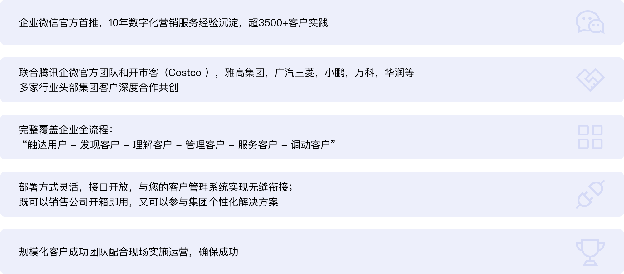 为此,我们推出了基于高净值企业营销和服务场景的企微营销工具。这一工具旨在赋能销售人员,让他们能够更轻松地将潜在客户转化为实际客户,并提供优质的服务。通过智能化和人性化的设计,我们帮助企业建立起自己的私域客户池,实现客户的持续运营和管理。